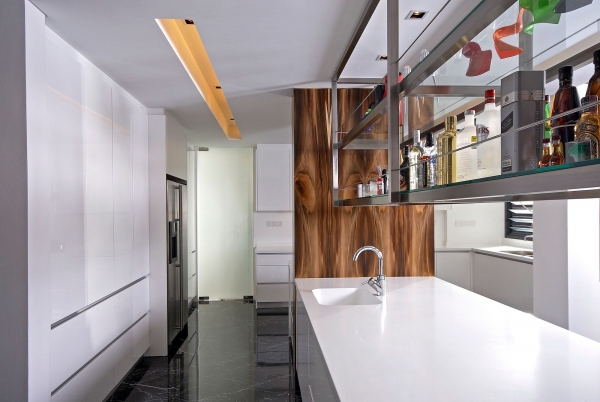 這個4500平方英尺的房子建在8000平方英尺的一個緩坡上降落。房子的方向是特殊的,因為它并不能面對服務道路,但有一個45度的傾斜。它能達到兩個目標:第一,寬度和建筑物的大小是優(yōu)化;其次,它確保隱私的人。建筑結(jié)構(gòu)保存雖然增加了一些微小的擴展。這房子被漆成白色,這樣一個能欣賞強壯的架構(gòu)形式。黑暗的鋁框玻璃窗被安裝在眾議院。以補充現(xiàn)代形式、景觀建筑都保持清潔。蓄意使用戲劇性的Serralunga盆與Zamia紙板棕櫚成為焦點的花園。